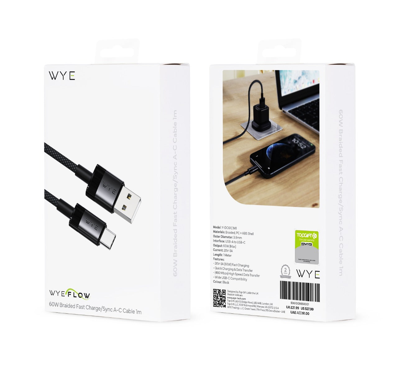 60W USB-A to USB-C Braided Charging Cable – Key Features