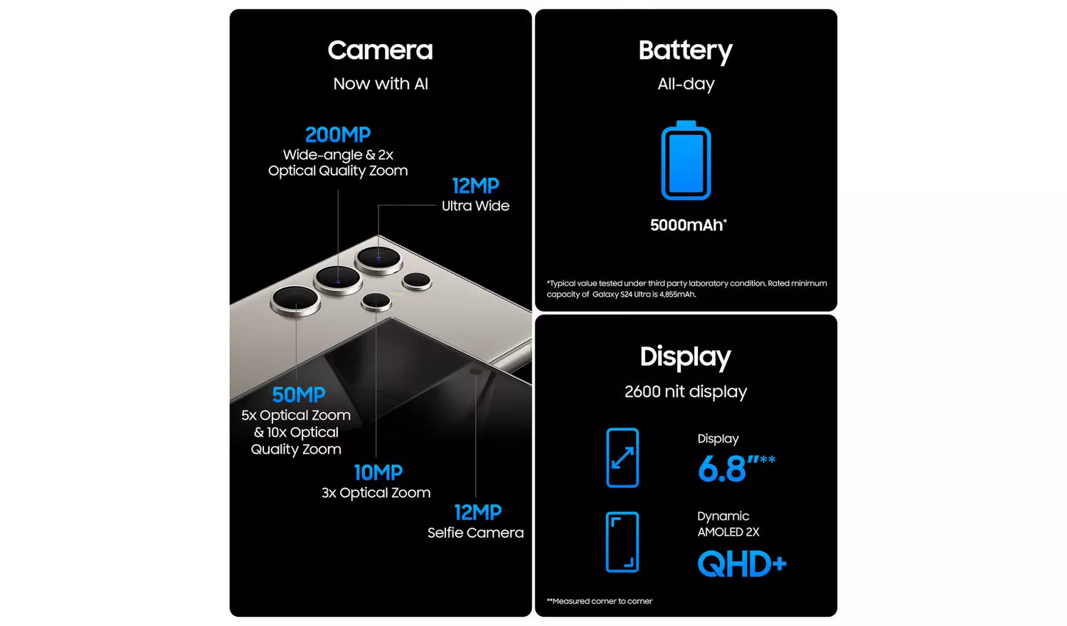200MP Main | Ultra Wide | 2x Telephoto | 5x Optical Zoom